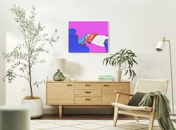 Verführerisch, surreal und unverschämt mutig – Zungentrip ist ein psychedelisches Stück aus dem EROTIKA Kollektion. Eine leuchtende Zunge reizt einen phallischen Pilz in diesem neongetränkten Kunstwerk, das Erotik mit Fantasie verbindet. Sinnlich, verspielt und leicht halluzinatorisch – ein Augenschmaus für Liebhaber provokanter Pop-Art.