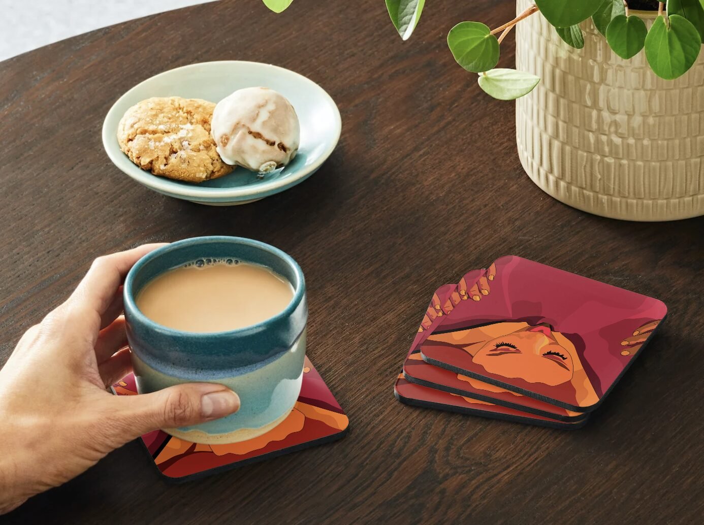 Alle Untersetzer bestehen aus Tablex (Hartfaserplatte) und verfügen über eine Korkrücken auf der Unterseite, um Oberflächen vor Kratzern und Flecken zu schützen.